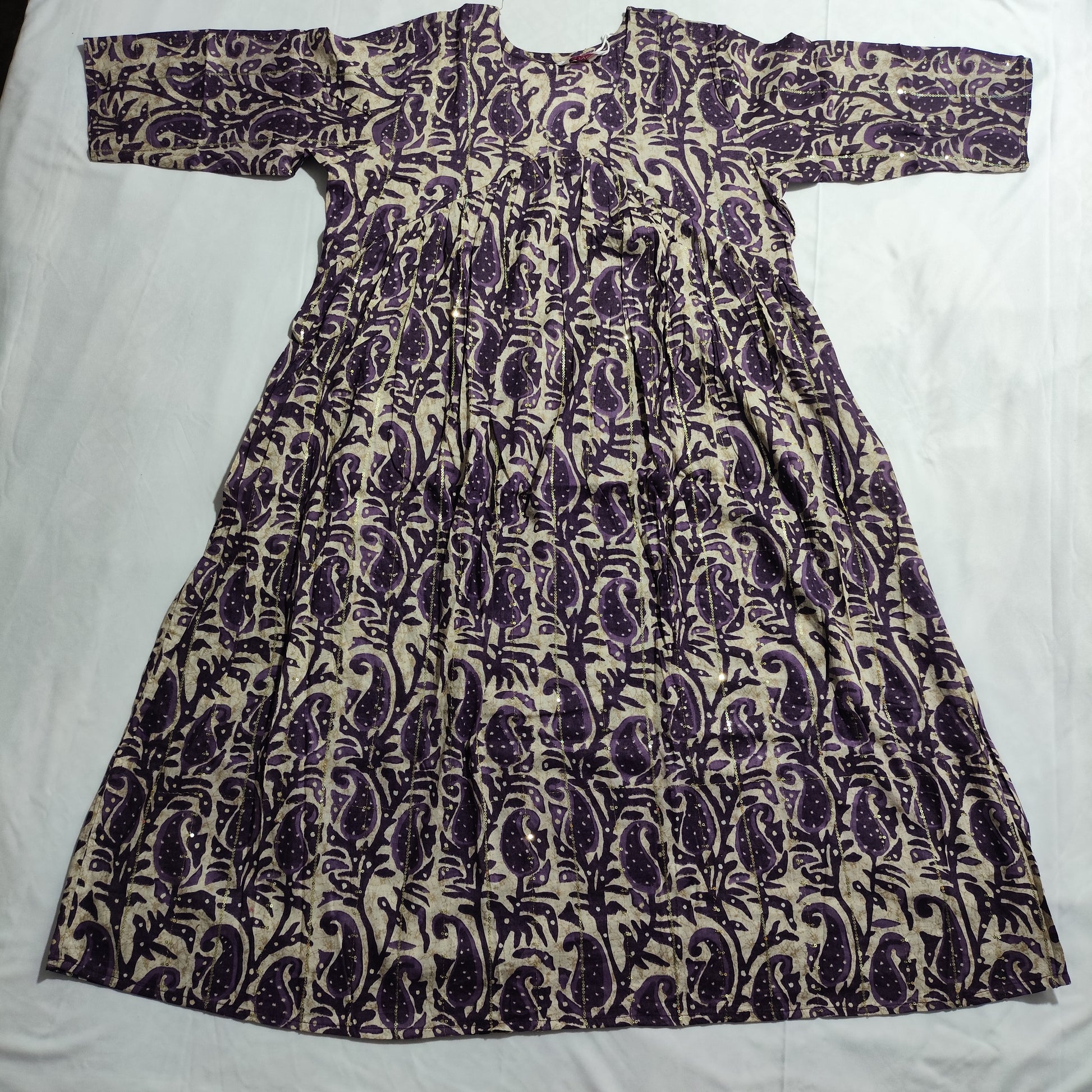 এই সুন্দর Rayon Fabric Kurti হালকা, নরম এবং breathable, যা আপনাকে দিবে সারাদিন আরামদায়ক অভিজ্ঞতা। বেইজ বেসের উপর ডার্ক পার্পল প্রিন্ট ও হালকা গোল্ডেন সিকুয়েন্সের কাজ এটিকে উৎসবের জন্য স্টাইলিশ ও আকর্ষণীয় করে তোলে।