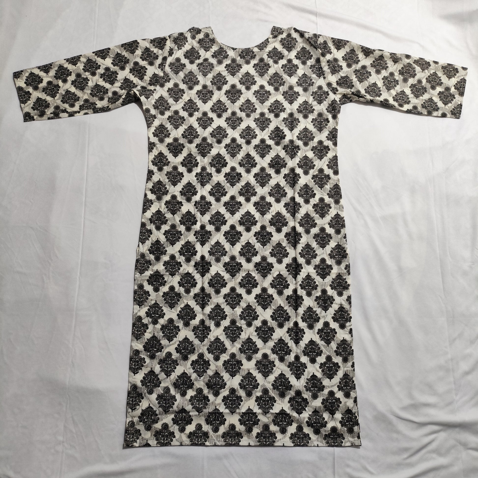 সংক্ষেপে: এই ৩-পিস কটন কুর্তি সেটটি হালকা, আরামদায়ক ও এলিগ্যান্ট ব্ল্যাক-অন-আইভরি প্রিন্টে, অফিস থেকে ফেস্টিভ সবখানে পরার জন্য পারফেক্ট ।