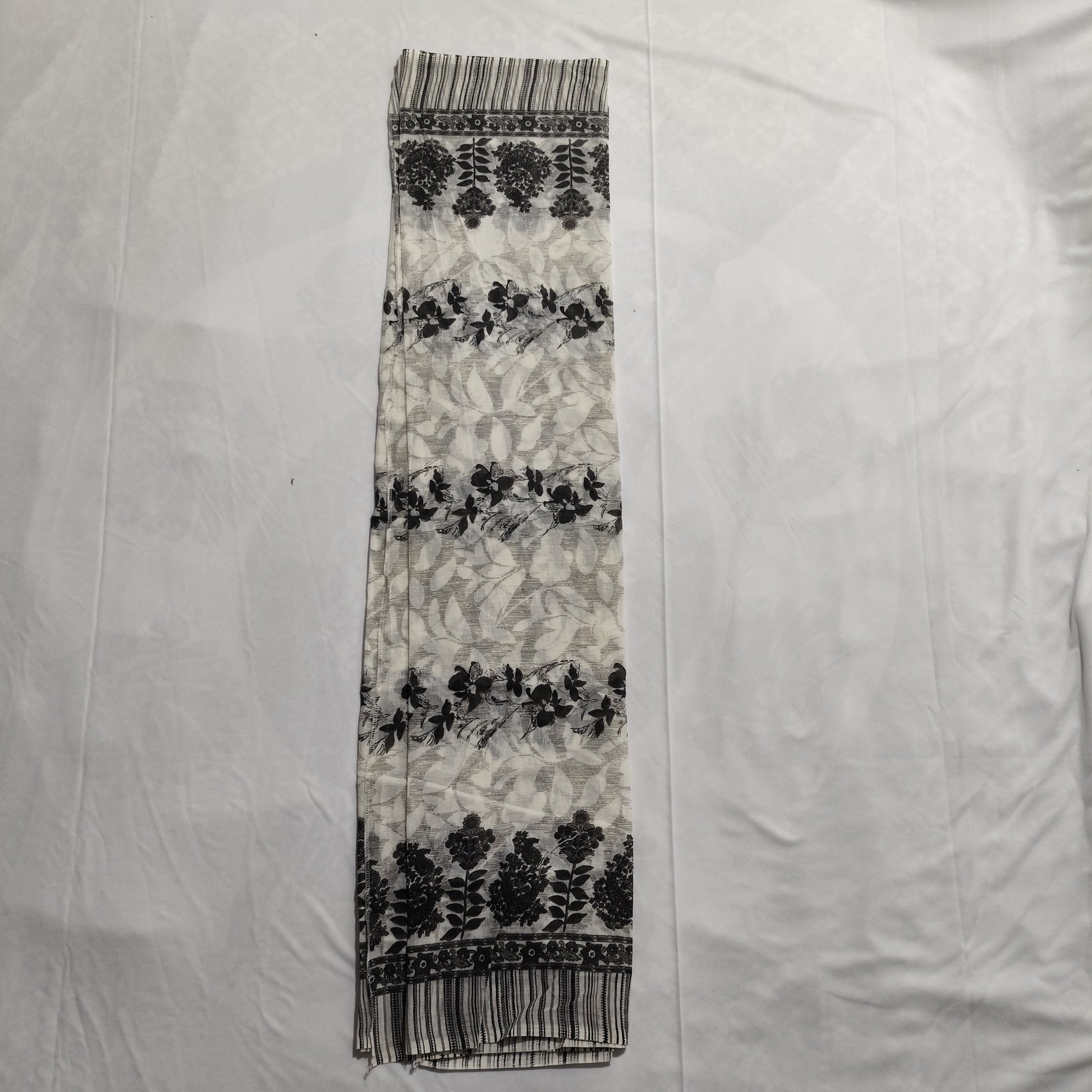 Monochrome Cotton 3-Piece Kurti Set | Floral Kurti, Stripe Pant, Printed Dupatta